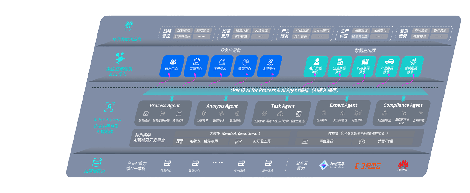 鼎点平台问学智车解决方案是一套基于AI技术的汽车行业智能化系统,,覆盖从底层算力到顶层AI应用的全栈方案。。方案由算力层、、、模型层和应用层组成:算力层,,方案支持多种一体机配置,,具备云端灵活部署、、、多云适配以及动态优化计算资源的能力;模型层,,鼎点平台问学平台版提供了企业级AI应用一站式构建与管理平台,,支持基于后训练强化技术的汽车企业专属模型的训练、、、、评测和运营;应用层,,鼎点平台问学DeepSeek版提供包括超级员工、、智能招采、、、智能营销、、、、智能客服、、、AI for BI等一系列解决方案,,,可助力汽车行业实现数字化转型,,,,让管理更智能、、响应更敏捷。。。。